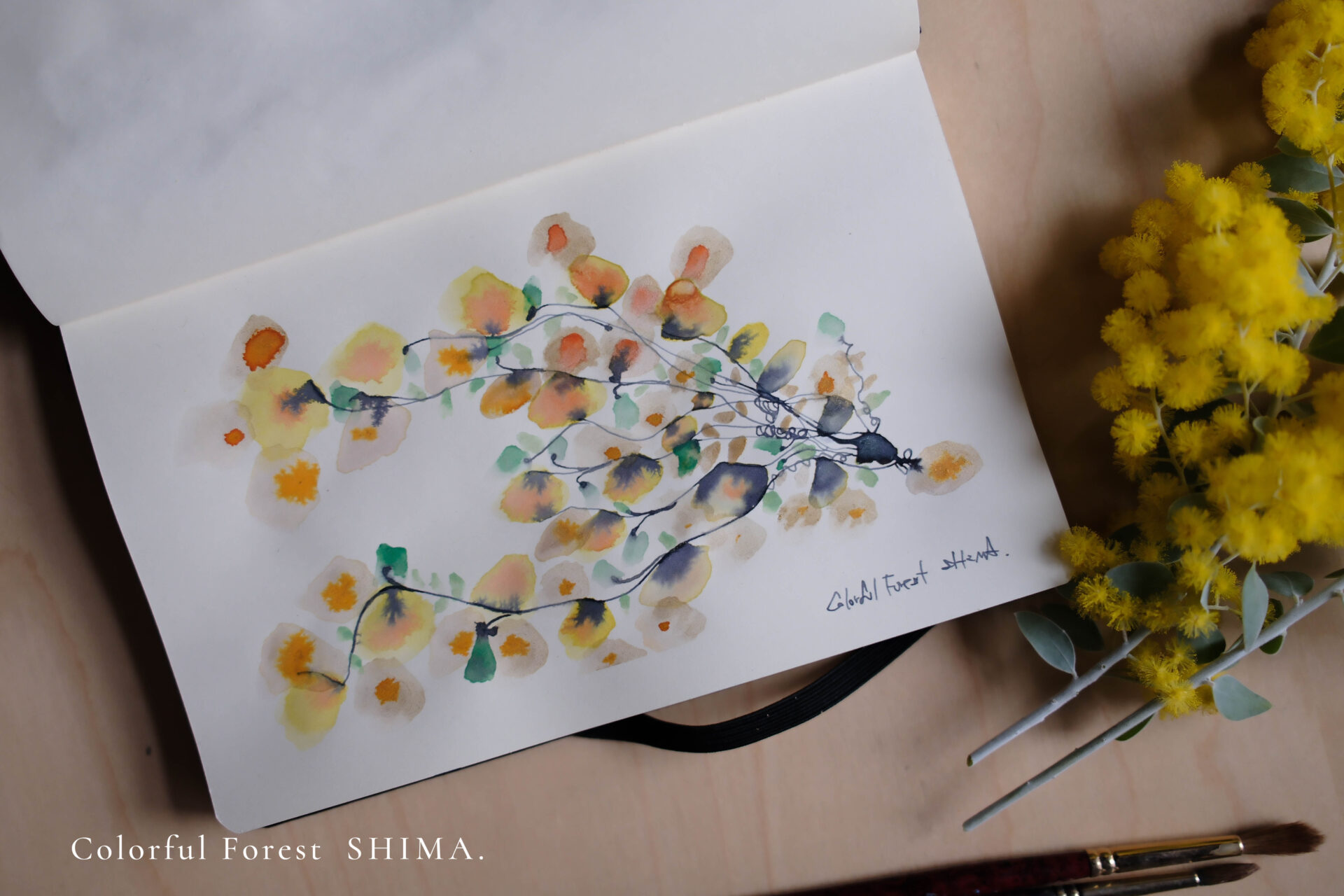 2026.03.28 朝のエスキース♯02 次の作品の種を探して、毎朝小さなスケッチブックにエスキース(スケッチ)を描いている。 この日はパールアカシアから色をひろい、インクを走らせ、水彩絵具をおいた。 今年も、春がきたなぁ。