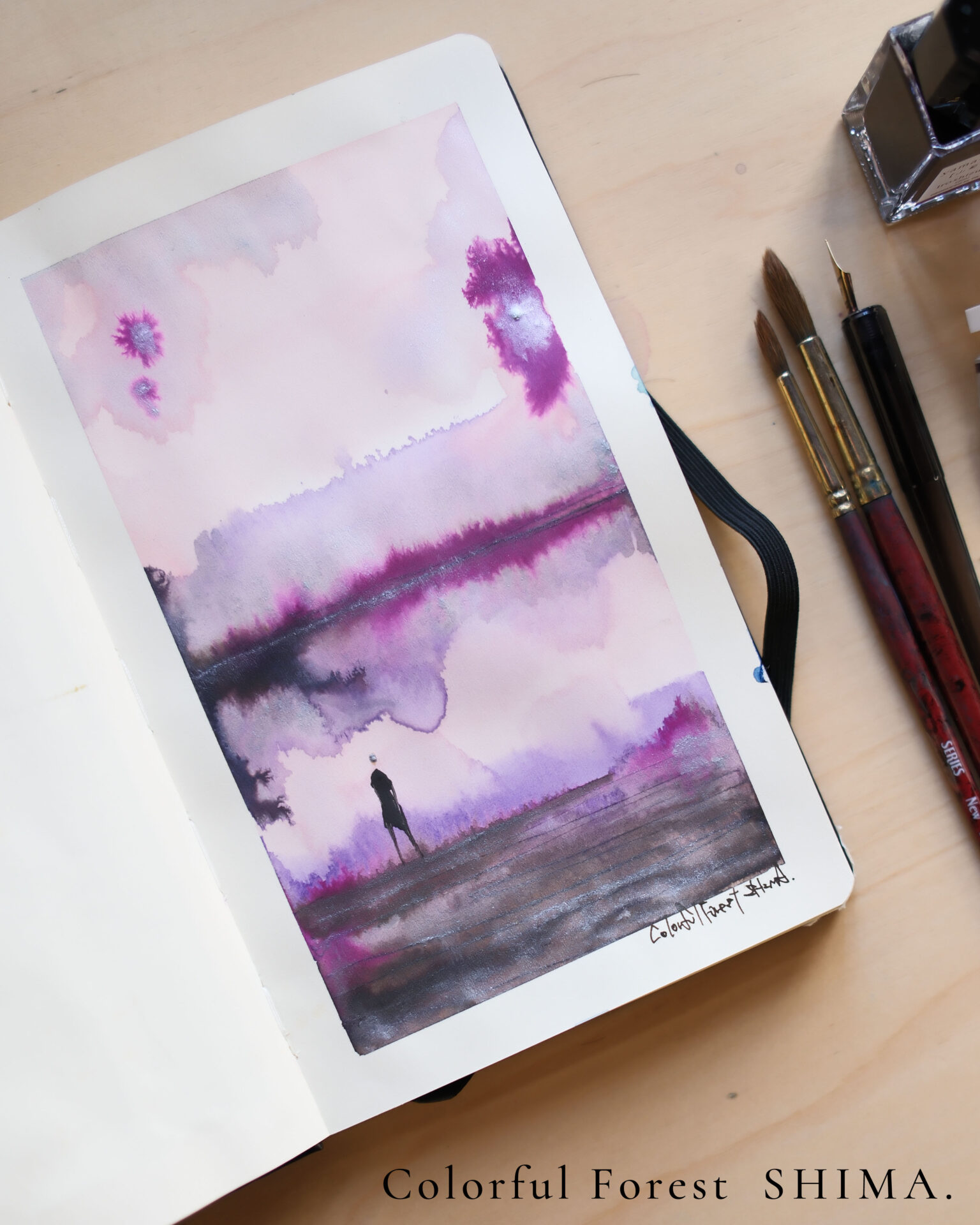 2026.03.30 朝のエスキース♯04 毎朝小さなスケッチブックにエスキース(スケッチ)を描き、作品の種を探している。 ピンクパープルにシルバーをたらしこむ。この景色の向こう側にはどんな世界が広がっているだろう。 ーMEMOー 次のエスキースでこの景色を広げてみよう。