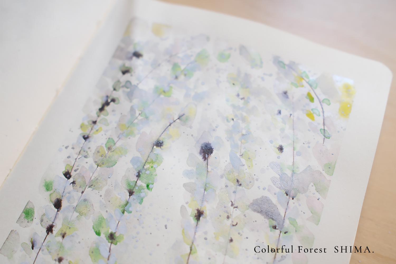 2026.04.10 朝のエスキース♯15 毎朝小さなスケッチブックにエスキース(スケッチ)を描き、作品の種を探している。 春に咲くユキヤナギ。可憐な白い花が並ぶ。 ユキヤナギから色をひろう。 春の色は優しい。
