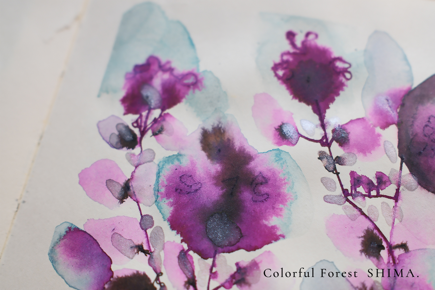 2026.04.11 朝のエスキース♯16 毎朝小さなスケッチブックにエスキース(スケッチ)を描き、作品の種を探している。 水色と紫の配色でColorful Forest に咲く花を描いた。 この配色、これまでにない感じだ。 次は縦長のBOOKに描いてみよう。