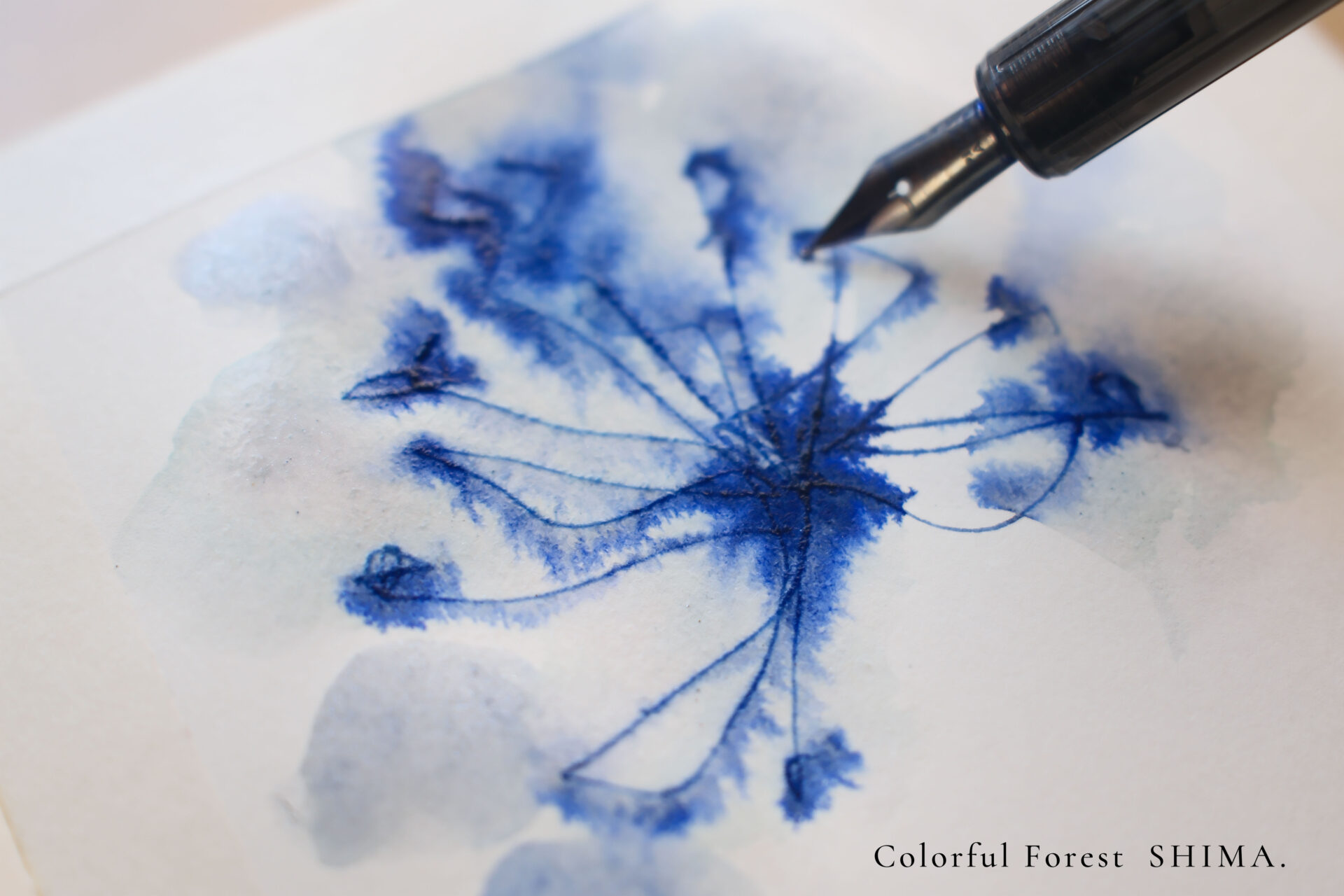 2026.04.15 朝のエスキース♯20 毎朝小さなスケッチブックにエスキース(スケッチ)を描き、作品の種を探している。 青いインクのせたペン先が行ったり来たり。ゆらゆらと揺れる。 揺れた先っぽに、青や黄色の葉を重ねてみる。 この葉がしげる大樹はどんな形をしているだろう。 次の作品の種がみつかった。