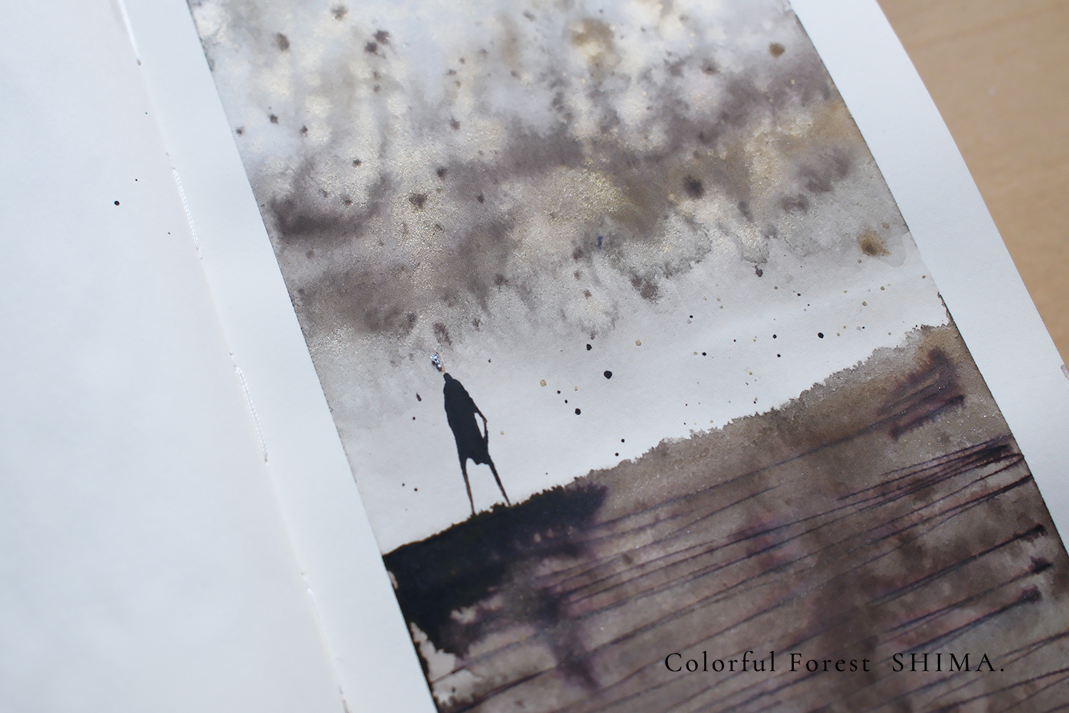 2026.04.17 朝のエスキース♯22 寒い朝。 季節が変わるすこし前。 色の抜けた森に残る気配。 毎朝小さなスケッチブックにエスキース(スケッチ)を描いています。 昨日のエスキースの世界を広げてみました。