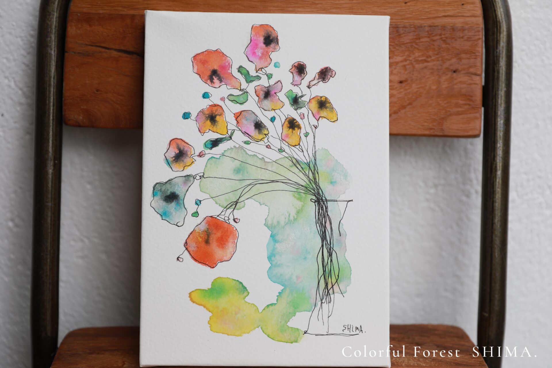 Colorful Forest Flower Vase Colorful Forest Flower Vase Year-2022 Size-サムホール Medium-Watercolor/Ink -Soldout